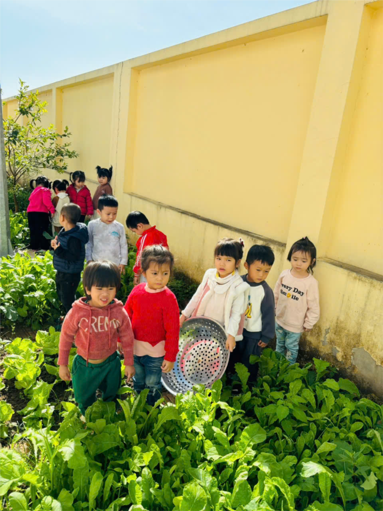 🌿🌱 Dưới sự hướng dẫn của cô giáo, các bạn nhỏ đã hào hứng quan sát, chạm tay vào lá rau, thân cây và cùng nhau học cách nhận biết các loại rau quen thuộc như cải xanh, củ cải, su hào. Những câu hỏi thú vị như "Rau cần gì để lớn lên?" hay "Tại sao lá cây lại có màu xanh?" đã khơi gợi sự tò mò và kích thích trí tưởng tượng của các con. Sau khi quan sát, các bạn nhỏ còn được tự tay nhổ những cây rau xanh mướt mang xuống bếp để các cô nuôi chế biến thành những món ăn ngon tuyệt cho các con nữa đấy, thích ơi là thích!!!