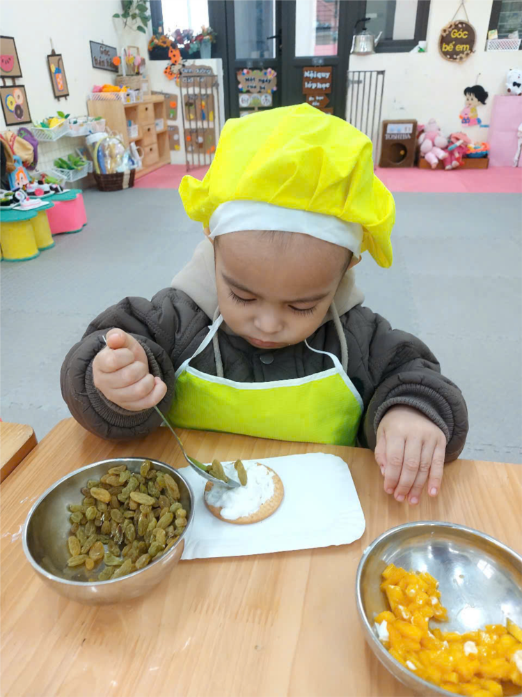 Thông qua hoạt động, trẻ không chỉ được rèn luyện đôi tay khéo léo, phát triển khả năng phối hợp tay – mắt mà còn được làm quen với các loại thực phẩm quen thuộc, hình thành thói quen ăn uống lành mạnh, sạch sẽ. Bên cạnh đó, hoạt động còn giúp trẻ mạnh dạn, tự tin hơn và tạo không khí vui vẻ, gắn kết trong lớp học.