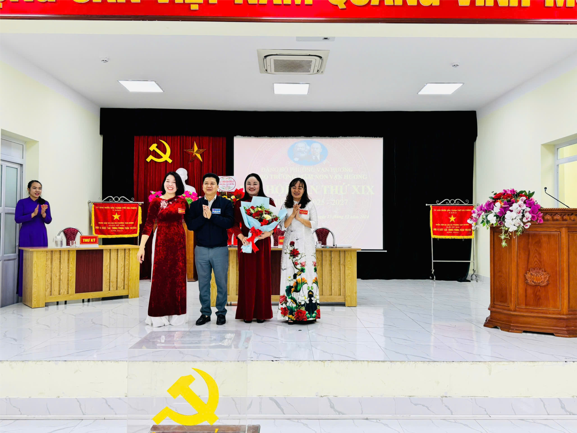 Phát biểu chỉ đạo tại Đại hội, đồng chí Đinh Xuân Thuỷ - Phó Bí thư thường trực Đảng uỷ - Chủ tịch UBND phường Vạn Hương đã đánh giá cao vào những kết quả mà Chi bộ đã thực hiện trong nhiệm kỳ vừa qua. Về nhiệm vụ trong thời gian tới, đồng chí đề nghị Chi uỷ Chi bộ cần tăng cường công tác tuyên truyền, giáo dục truyền thống văn hoá cho đội ngũ CBGVNV, tiếp tục quán triệt Nghị quyết của Đảng, Chính sách pháp luật của nhà nước, khơi dậy tình yêu nghề mến trẻ, xây dựng hướng tới mục tiêu phát triển của nhà trường.