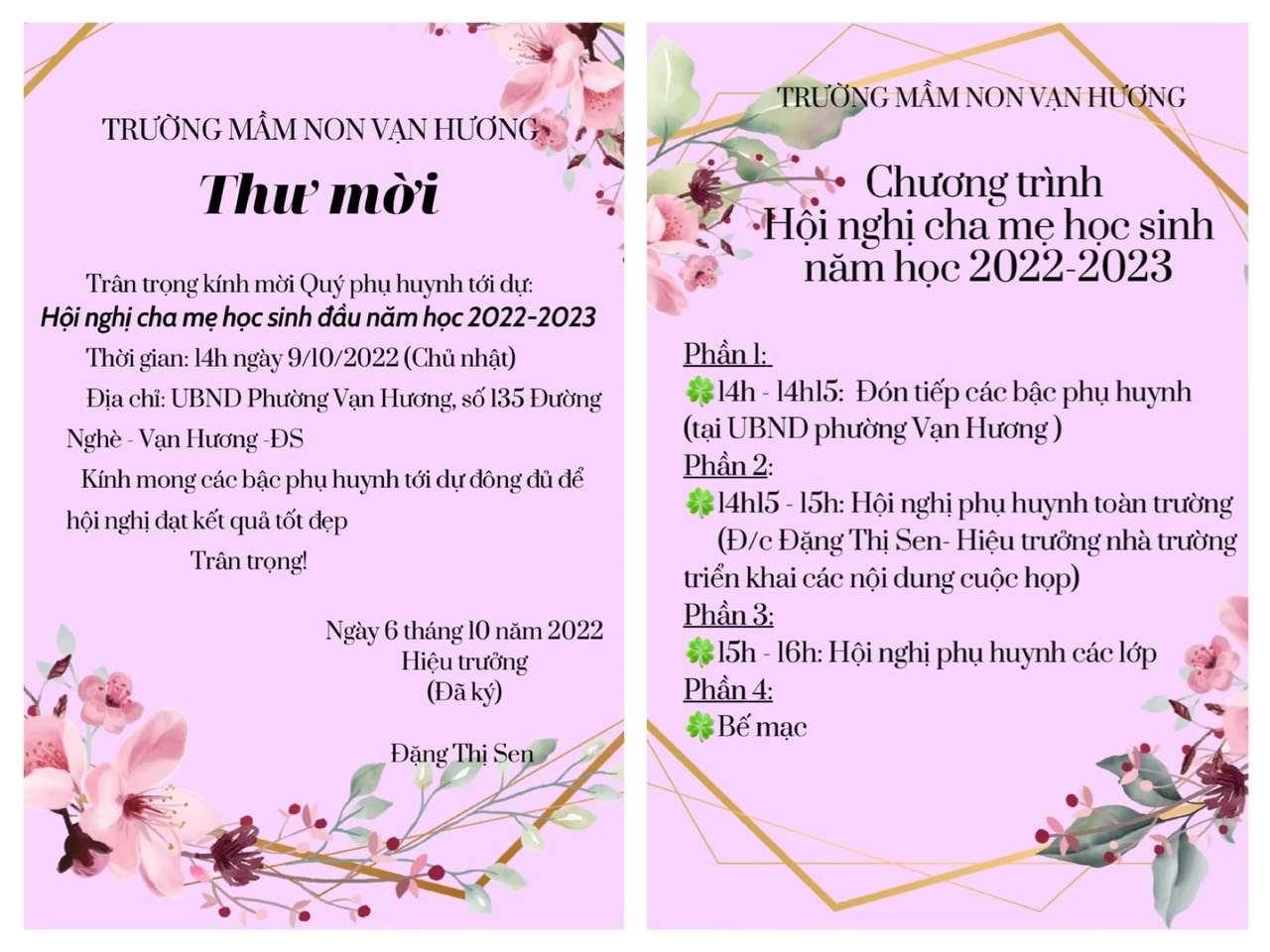 TRƯỜNG MẦM NON VẠN HƯƠNG