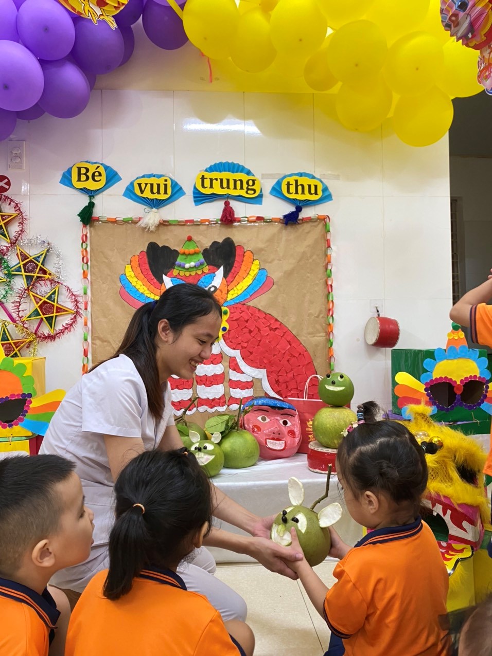 Với mong muốn tái hiện những hình ảnh Trung thu truyền thống, góp phần gìn giữ bản sắc văn hóa dân tộc và mang đến cho trẻ một mùa trung thu đầy ý nghĩa. Hôm nay, ngày 9/9/2022 trường Mầm non Vạn Hương tổ chức vui Tết trung thu cho trẻ. Xin trân thành cảm ơn các bậc phụ huynh đã quan tâm, sát cánh cùng nhà trường để đem lại cho trẻ một mùa Trung thu thật ấm áp và tràn ngập yêu thương.