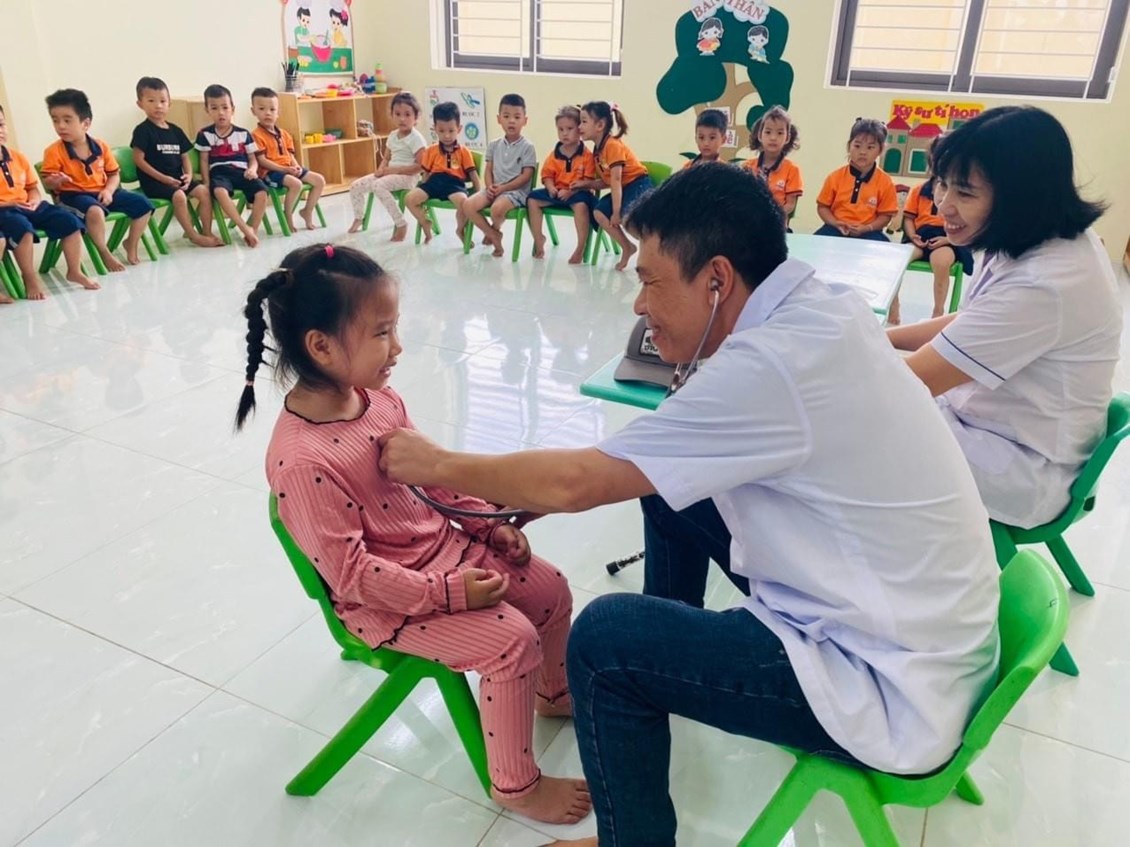 Một số hình ảnh khám sức khỏe định kỳ tại trường Mầm non Vạn Hương.