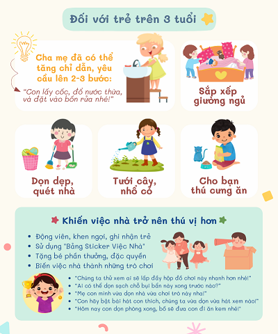 Dạy trẻ làm việc nhà chính là cách tuyệt vời để dạy cho bé các kỹ năng sống từ nhỏ. Giúp cho trẻ biết cách sẻ chia và có tinh thần trách nhiệm khi còn bé. Để dạy con làm việc nhà đúng cách và hiệu quả thì không phải cha mẹ nào cũng biết.
